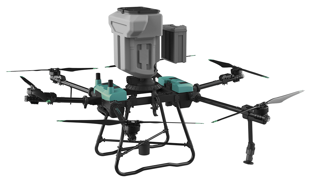 El dron agrícola GRIPT SKYBEAST G640 cuenta con un diseño de seis rotores para un vuelo estable y fácil control. Tiene una capacidad de pulverización de 40 litros y admite una caja de dispersión de 60 litros (50 kg), mejorando así la eficiencia del trabajo.